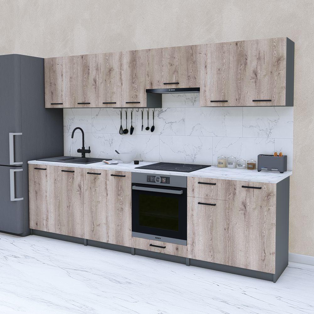 Кухня готова модульна 2.8 м, кухонний гарнітур 280 см із ДСП із верхніми шафами