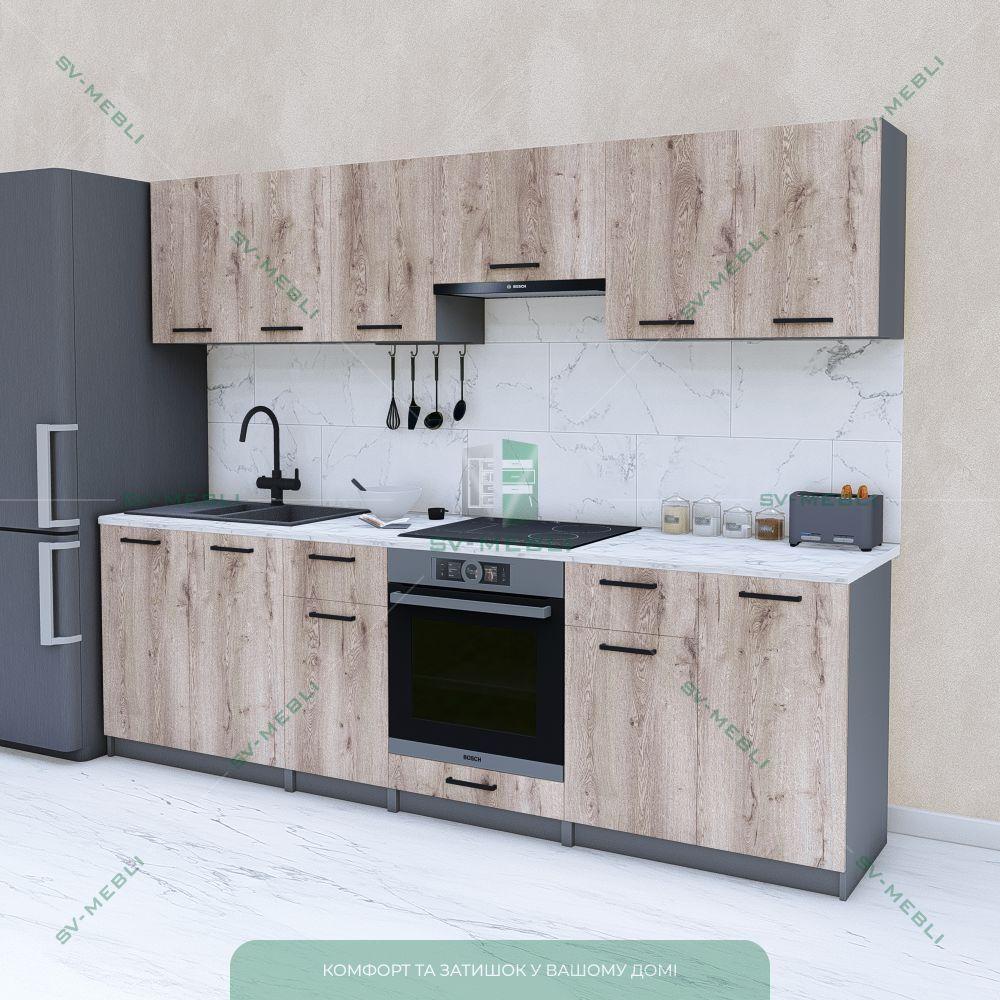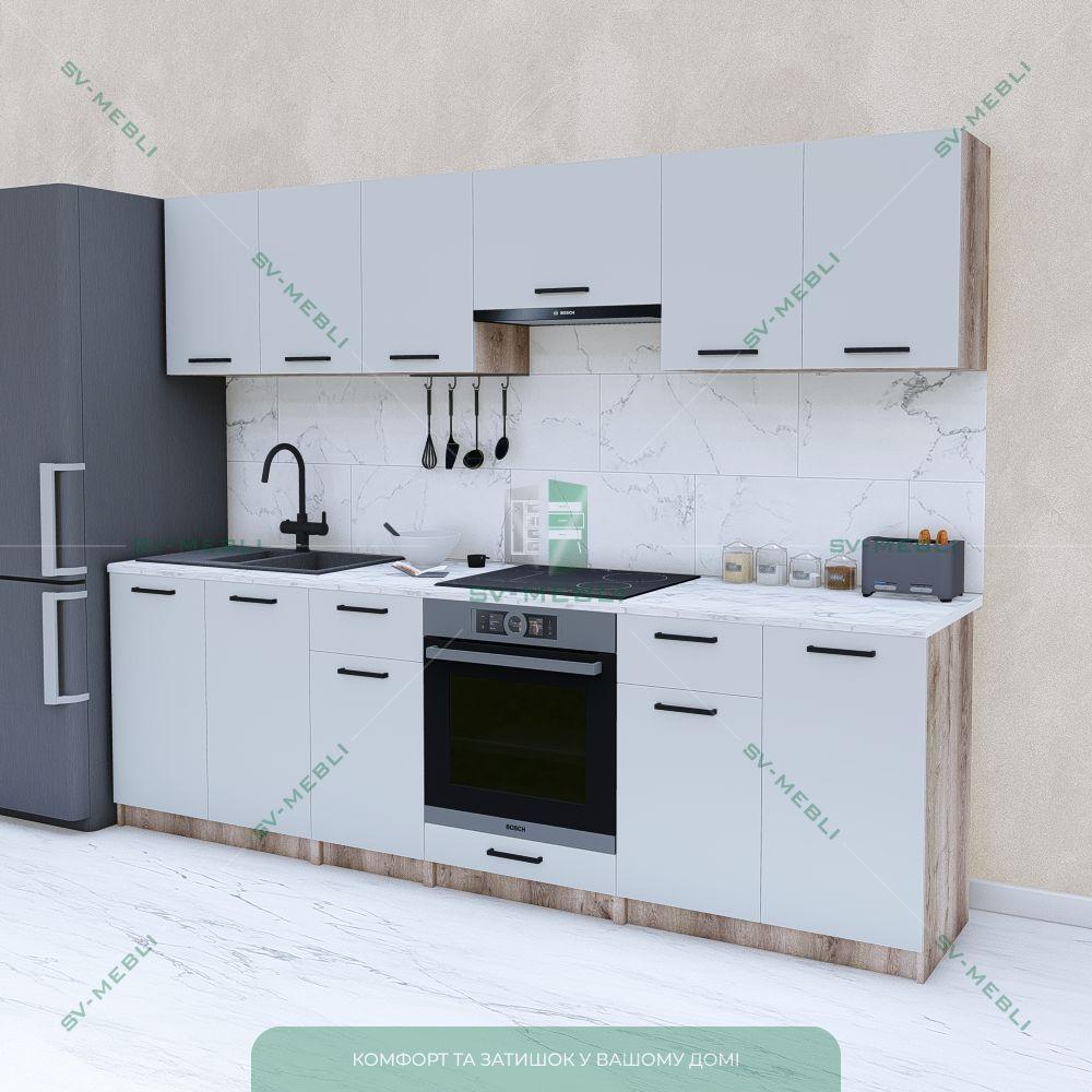 Сучасна готова кухня 2.6 м, модульний кухонний гарнітур 260 см із верхніми шухлядами