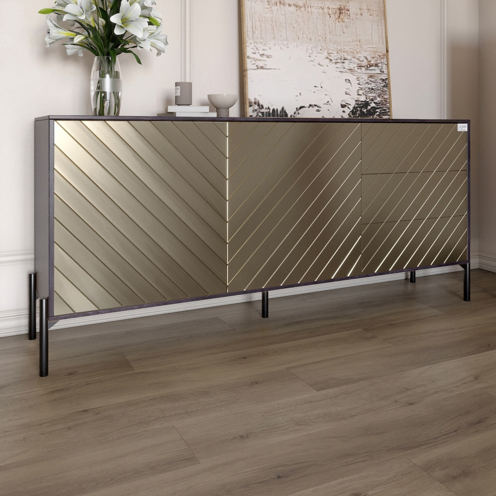 Комод з чорними металевими ніжками LION Амарант 168x40x76,5 см Бетон темний/Перламутровий металік (LION-041919)